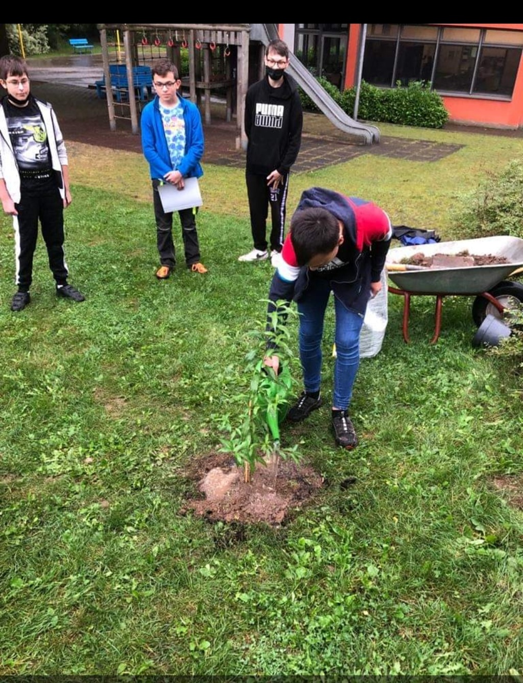 Gemeinsam mit den Schülerinnen und Schülern der Gartengruppe wurde im Rahmen der Aktion „Faszination Mosel/Lebendige Moselweinberge“, wozu auch die Saar gehört, ein Weinbergpfirsich gepflanzt. Die gesamte Schulgemeinschaft bedankt sich und hofft, dass der Baum bald reiche Früchte trägt.