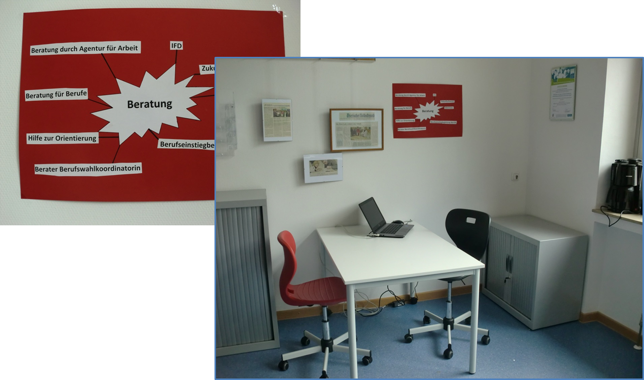 Das Berufsorientierungsbüro ist ein zentraler Ort an der Schule, an dem die Aktivitäten der Berufsorientierung systematisch und transparent zusammengeführt, koordiniert und zugänglich gemacht werden. Alle Fragen rund um die Berufs- und Arbeitswelt sollen hier für Schüler geklärt werden. Besonders Jugendliche mit Beeinträchtigungen oder aus sozial benachteiligten Familien, die zu Hause wenig Unterstützung erhalten und nicht über einen Computer zur Recherche von Informationen verfügen, benötigen die schulische Unterstützung hinsichtlich ihrer Berufswahl. Das Berufsorientierungsbüro als Informations- und Beratungszentrum bietet an dieser Stelle die Möglichkeit, Schülern genau diese Hilfe und Unterstützung zu geben.